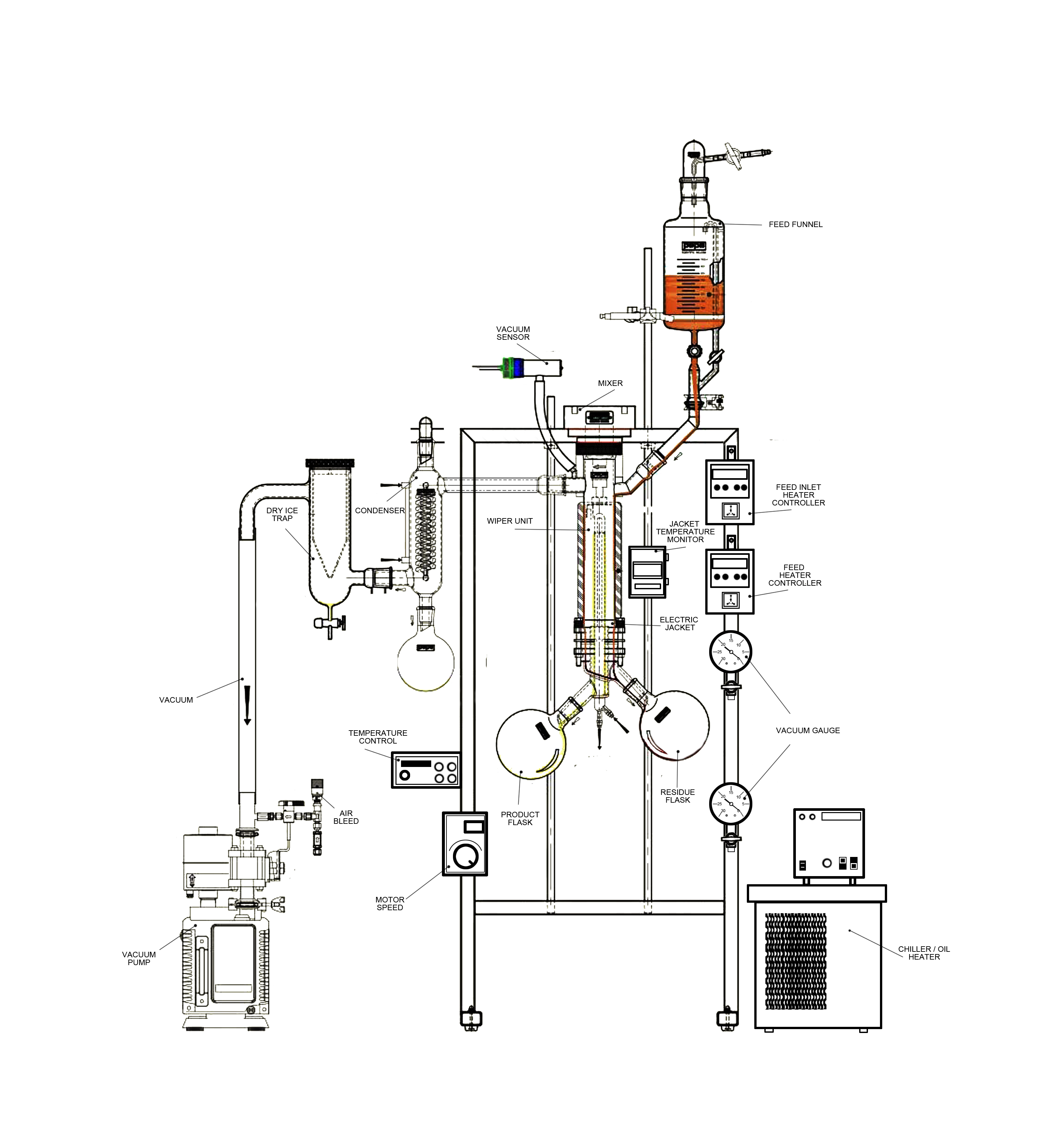 The 2" Wipe Film Evaporator Unit and 4" Wiped Film Evaporator Unit is extremely effective and efficient for steam distillation of cannabis or short-path distillation of cannabis. These Units are today's most popular starting points for producers of high grade THC and CBD concentrates. The Wiped Film Evaporator Unit is comprised of components carefully selected to provide the concentrate manufacturer with a complete optimized for cannabinoid work.